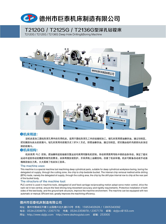 3) 根據用戶的需求,深孔鉆鏜床可帶鉆(鏜)桿箱,工件可低速旋轉,刀具高速旋轉,提高加工效率。